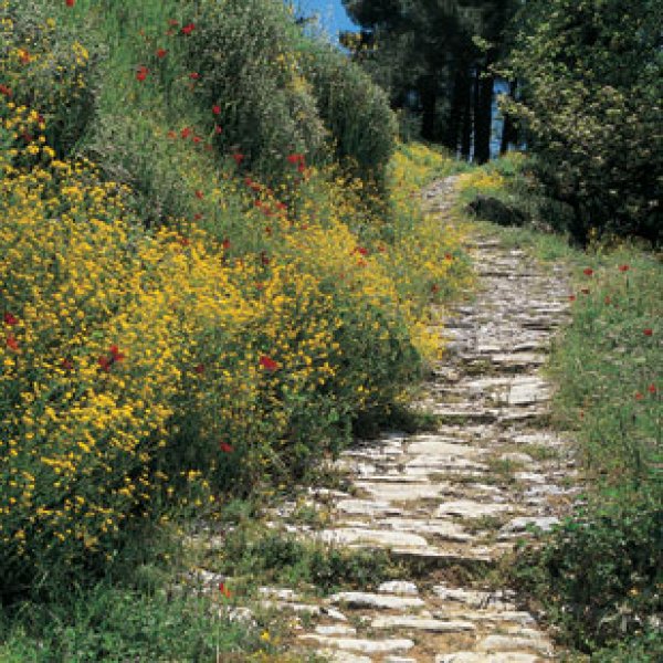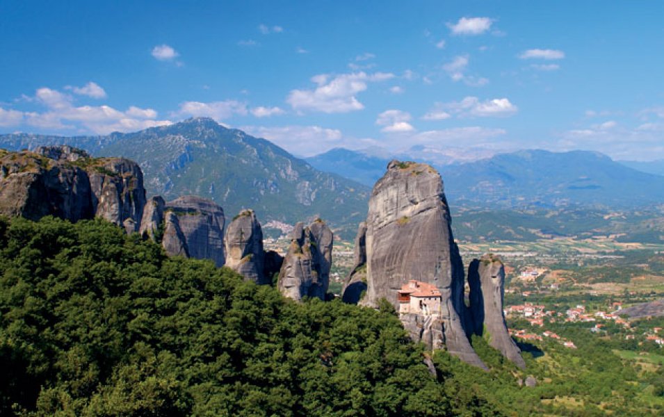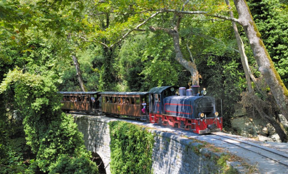 The lush peninsula of Pèlion is situated approximately halfway between Athens and Thessaloníki, predominated by Mount Pèlion. Nestled on the mountainside is the beautiful village of Miliès. The village is surrounded by apple orchards, from which it derives its name, and olive groves. The charming village square is the meeting place for villagers and visitors alike. Tavernas serve traditional meals and pitas (pies) for which the area is well known. Access to the houses is via the kalderimis (donkey tracks). Pèlion is home to the terminal of the old slow steam train which began operation in 1894 and ceased to run in 1970. Nowadays steam train enthusiasts have restored the train and during the summer months, visitors can go back in time and take a ride along the panoramic route through the Pagasitic Gulf. The original name of the train was Moutzoúris (man with smudges), probably linked to the sooty faces of the operators. It is very impressive to see how the train is turned around manually at the end of the line.