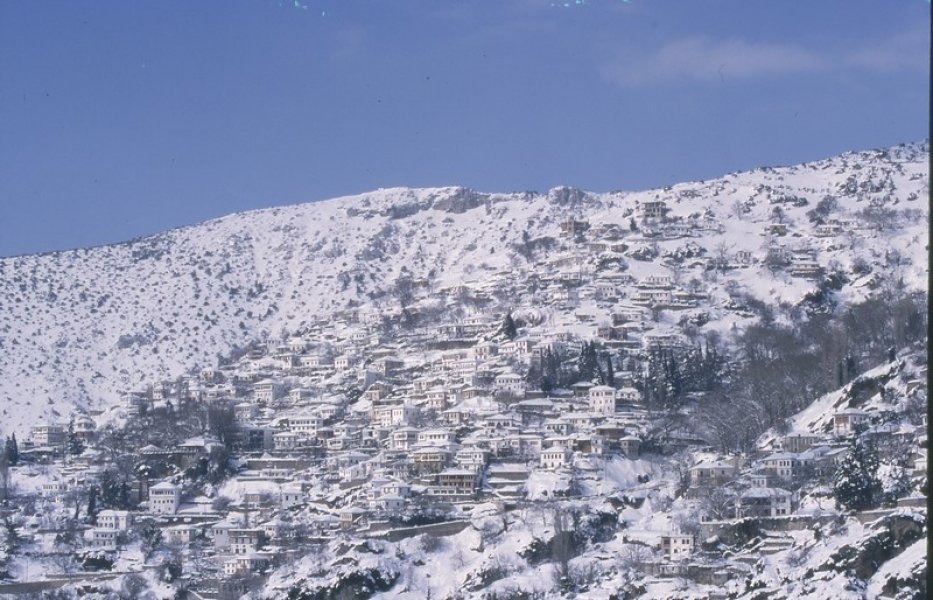 According to mythology, the Gods chose this place as their summer stay. Offers to the Gods mainly consisted of fruit and seeds, sometimes from faraway lands, and this is how the rich and so diverse vegetation in this area is supposedly explained. The typical houses (archontiká) indicate that the inhabitants were wealthy merchants. Even now the same style of architecture is the only one used. Further examples of this unique style of building (archontikó) can also be found in the neighbouring villages of Vizίtsa and Pinakátes.